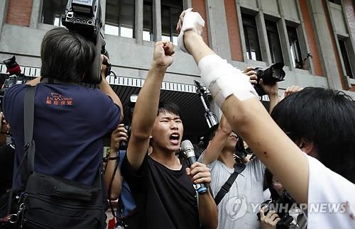 | △ 대만 교육부 구내에서 학생들이 '친(親) 중국' 기조의 교과서 개편에 반대하는 시위를 벌이고 있다. (AP=연합뉴스DB) |