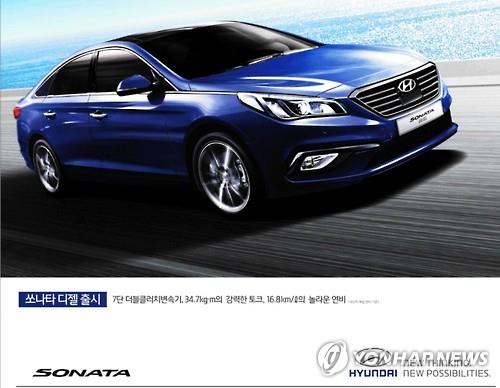 현대차는 지난달 2일 2016년형 쏘나타를 출시하면서 1.7 디젤 모델 등 3가지 모델을 포함시켜 라인업을 7종으로 늘렸다. 1.7 디젤은 2016년형 쏘나타 전체 모델 중 30%의 비중으로 계약이 이뤄지고 있다.
