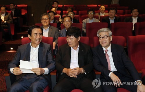 | △ 롯데그룹 사장단 회의 (서울=연합뉴스) 임헌정 기자 = 노병용 롯데물산 사장(왼쪽) 등 롯데그룹 사장단이 4일 서울 송파구 롯데월드타워 홍보관에서 회의를 하고 있다. |