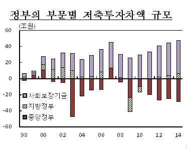 중앙정부는 28조5천억원의 적자였던 반면 지방정부(6조원)와 사회보장기금(41조1천억원)은 흑자였다.