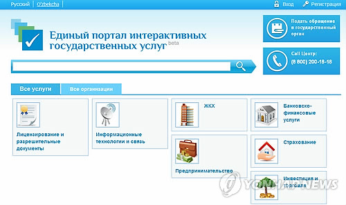 | △ 한국형 전자정부 모델을 기본으로 구축된 우즈베키스탄의 전자정부가 온라인 서비스 (연합뉴스 자료사진) |