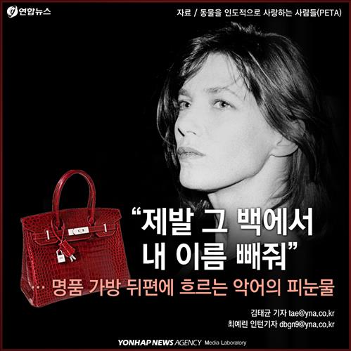 (서울=연합뉴스) 김태균 기자·최예린 인턴기자 = 수천만원을 호가하는 악어가죽 에르메스 '버킨백'. 1960∼1970년대를 풍미한 배우 겸 가수 제인 버킨의 이름을 딴 가방인데요, 최근 그녀가 돌연 "제발 그 가방에서 내 이름을 빼달라"고 요구했습니다. 무슨 사연일까요?