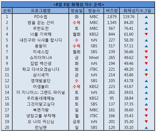 5일 다음소프트 화제성 지수 1위