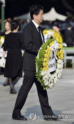 (도쿄=연합뉴스) 조준형 특파원 = 아베 신조(安倍晋三) 일본 총리가 히로시마(廣島) 원폭 투하 70년인 6일 역대 총리가 지난 19년간 매년 언급해온 비핵 3원칙을 거론하지 않아 파문을 일으켰다.