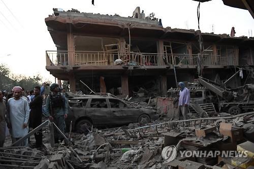 | △ 7일 아프간 수도 카불의 차량 폭탄 테러 현장 모습(AFP=연합뉴스) |