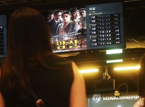(서울=연합뉴스) 홍국기 기자 = 지난달 한국영화 '암살'이 전체 흥행순위 1위에 오른 것으로 나타났다. 한국영화와 외화의 점유비는 48 대 52로 거의 비슷했다.