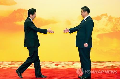 | △ 2014년 11월 베이징에서 열린 APEC 정상회의에서 만난 시진핑 중국 국가주석과 아베 신조 일본 총리.(AP=연합뉴스DB) |