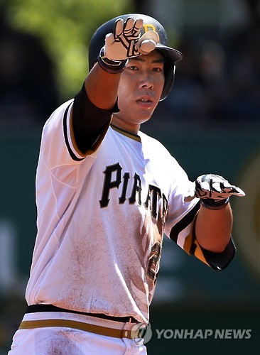 (서울=연합뉴스) 신창용 기자 = 강정호(28·피츠버그 파이리츠)가 메이저리그 최고의 투수로 꼽히는 클레이턴 커쇼(로스앤젤레스 다저스)와의 첫 대결에서 안타를 뽑아냈다.