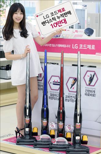 (서울=연합뉴스) 옥철 기자 = LG 프리미엄 무선청소기 '코드제로 핸디스틱'이 국내 누적 판매량 10만대를 넘었다고 LG전자가 9일 밝혔다.