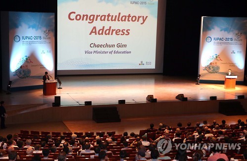 (부산=연합뉴스) 조정호 기자 = '화학올림픽'으로 불리는 '2015 세계화학대회'(IUPAC-2015)가 9일 오후 부산시 해운대구 벡스코에서 막을 올렸다.