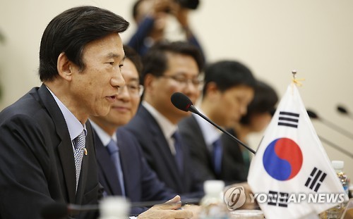 | △ 인사말 하는 윤병세 외교부 장관 (서울=연합뉴스) 황광모 기자 = 윤병세 외교부 장관이 10일 오후 서울 도렴동 외교부 청사에서 열린 제2차 한·영 전략대화에서 필립 해먼드 영국 외교장관에게 인사말을 하고 있다. hkmpooh@yna.co.kr |