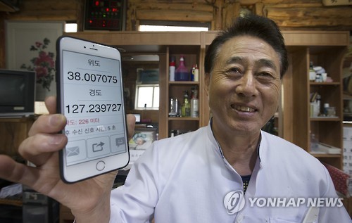 (포천=연합뉴스) 권숙희 기자 = 스마트폰의 GPS앱을 켜자 위도가 38.007075다.