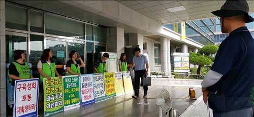 노조 측은 방과후 전담사의 급여명세서를 공개하면서 열악한 처우 개선 요구를 목소리를 높이고 있다.
