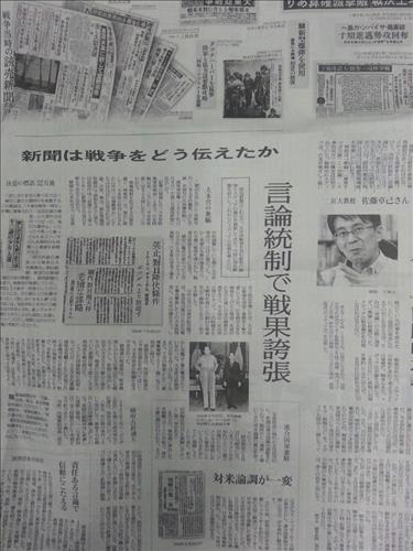 사토 교수는 "전쟁때 언론은 일본이 용감하게 싸움을 계속하고 있다는 기사를 읽고 싶다는 국민의 욕구에 부응하고 있었다고도 말할 수 있지만, 그것은 '대중의 기분'을 반영할 뿐이었고 존중해야할 '공론'은 방기한 것"이라며 "언론은 전쟁 책임을 자각하지 않으면 안 된다"고 말했다.