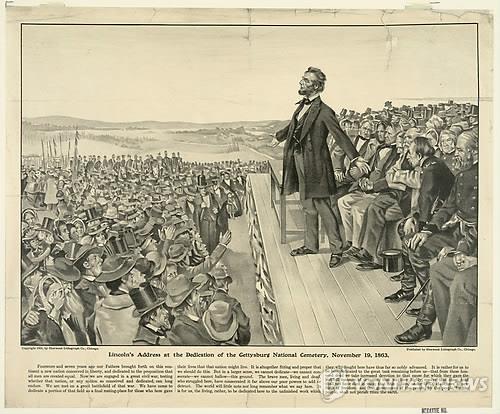 링컨 전 대통령은 272개의 단어와 10개 문장으로 이뤄진 3분짜리 이 연설에서 '국민의, 국민에 의한, 국민을 위한 정부'를 구성하겠다며 민주주의 이념을 설파했다.