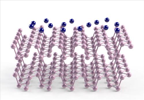 | △ 2차원 반도체 포스포린과 그 표면 위에 흡착된 칼륨 원자의 모식도 |