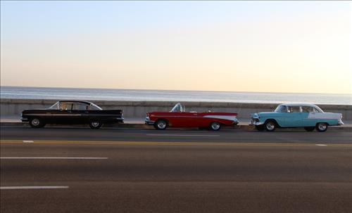 성조기가 다시 올라간 깃대 뒤로는 말레콘 방파제를 배경으로 검은 색과 빨간 색, 푸른 색 '올드모빌' 3대가 이번 행사를 축하라도 하듯 멋진 맵시를 뽐냈다.