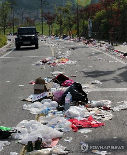 이날 가요제는 폭우와 폭염에도 불구하고 4만5천여 명이 모여 성황을 이뤘지만, 인파가 모두 떠난 행사장 곳곳은 관람객들이 버리고 간 엄청난 양의 쓰레기로 뒤덮였다.