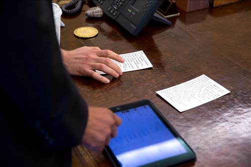 | △ 참모와 휴가철 플레이리스트를 논의하고 있는 오바마 대통령 <<백악관 홈페이지>> |