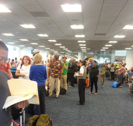 하지만 이들이 겪을 '고난의 여정'은 이제 시작이었다. 항공기를 걸어나온 수백명에 달하는 승객들은 그 항공사의 '재예약 센터'(Rebooking Center)로 안내된뒤 최소 서너시간씩 줄을 서서 기다려야 했다.