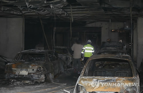1층에 세워진 오토바이에서 시작된 불길은 삽시간에 건물 꼭대기 층인 10층까지 번졌다. 옆 건물 아파트에도 옮겨 붙었다.