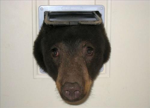 '고양이 문구멍'에 머리 낀 곰 사진 화제