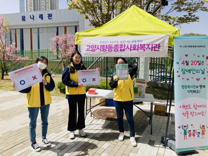 [부자동네타임즈 김인수기자] 고양시 향동종합사회복지관은 4월 12일, 향동동 숲내초등학교 인근에서 ‘장애인의 날’을 알리고 장애인 인식개선을 위한 캠페인을 실시했다.