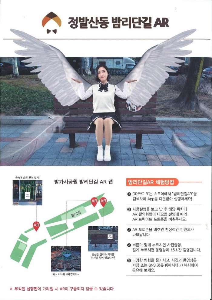 세 곳의 포토존이 설치된 밤가시 제2공원을 방문하여 스마트폰에 플레이스토어를 통해 밤리단길AR앱을 설치한 후, 지정된 위치에서 사진을 찍으면 ▲숲속에 숨은 판다 찾기 ▲연못 속에 있는 고래 만나기▲벤치에서 천사와 함께 커피 마시기 등을 경험할 수 있다.