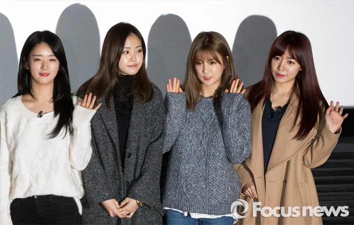 (서울=포커스뉴스) 2일 오후 서울 마포구 상암동 CGV에서 열린 에이핑크와 함께하는 신년 데이트 'Pink MEMORY DAY' 에 참석해 포토타임을 갖고 있다. 왼쪽부터 에이핑크 멤버 윤보미, 손나은, 박초롱, 김남주.