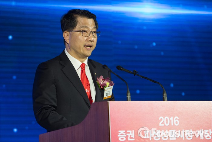 (서울=포커스뉴스) 병신년(丙申年) 새해 첫 증시 개장일인 4일 오전 영등포구 서울 여의도 거래소 2016년도 증권·파생상품시장 60주년 개장식에서 진웅섭 금융감독원장이 축사를 하고 있다.