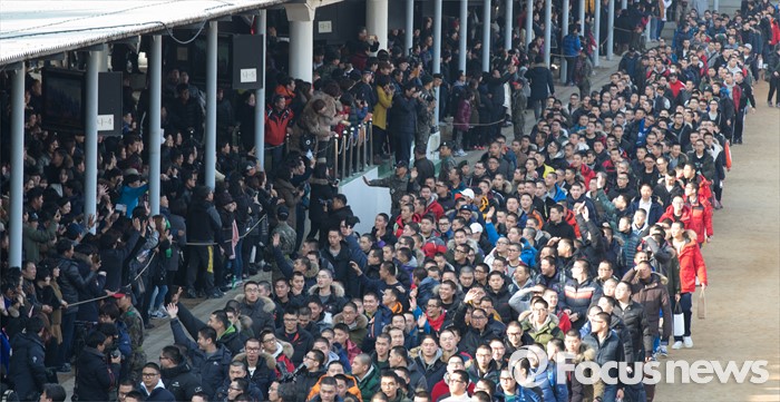 (논산=포커스뉴스) 4일 오후 충남 논산 육군훈련소 입영심사대에서 입영장병들이 가족과 인사하기 위해 연병장을 돌고 있다.
