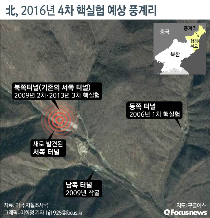 | △ [그래픽] 北, 2016년 4차 핵실험 예상 풍계리 |