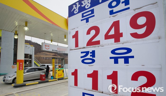 (음성=포커스뉴스) 국제유가 하락으로 휘발윳값이 7년 만에 최저가를 보인 가운데 6일 오전 11시 기준 충북 음성군 감곡면에 위치한 주유소에서 전국 최저가인 리터당 휘발유는 1249원, 경유는 1112원에 판매되고 있다.