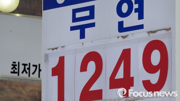 (음성=포커스뉴스) 국제유가 하락으로 휘발윳값이 7년 만에 최저가를 보인 가운데 6일 오전 11시 기준 충북 음성군 감곡면에 위치한 주유소에서 전국 최저가인 리터당 휘발유는 1249원, 경유는 1112원에 판매되고 있다.