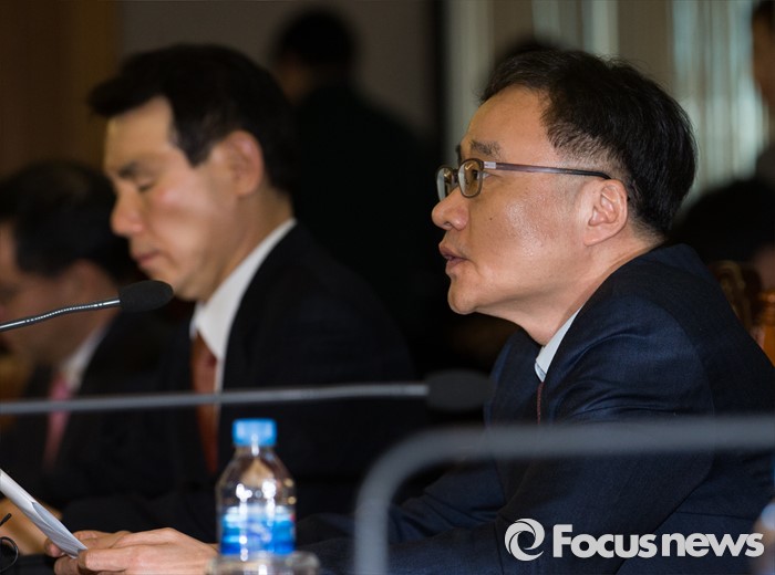 (서울=포커스뉴스) 북한이 수소탄 실험에 성공했다고 발표한 6일 오후 서울 중구 은행회관에서 열린 긴급 거시경제금융회의에 참석한 정찬우(왼쪽) 금융위 부위원장이 모두발언 하고 있다.