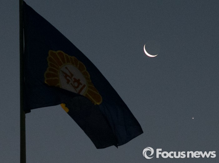 (서울=포커스뉴스) 7일 오전 서울 여의도 국회 하늘 위에 그믐달과 샛별이 밝게 빛나고 있다.