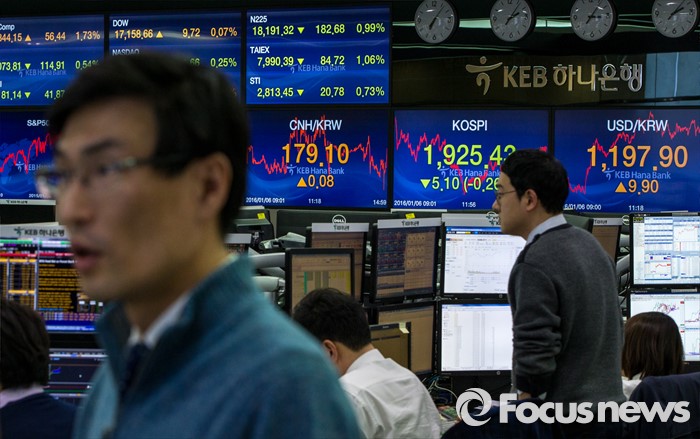 정경팔 하나선물 시장분석팀장은 "위안화 이슈와 국제유가 하락 영향에 원‧달러 환율은 당분간 상승압력을 받을 것"이라며 "국제금융시장 동향 모니터링과 국내 금융시장 기대쏠림 방지 등의 노력을 지속해 나가야 한다"고 말했다.(서울=포커스뉴스) 코스피 지수가 전거래일 보다 5.10포인트(0.26%) 하락한 1,925.43에 거래를 마치며, 북한의 수소탄 실험에도 1920선을 지킨 6일 오후 서울 중구 KEB하나은행 본점 딜링룸에서 딜러들이 업무를 보고 있다. 이날 원달러 환율은 전거래일 보다 9.9원 오른 1197.9원에 마감하며, 지난해 9월 1200.9원 이후 4개월 만에 최고치를 기록 했다. 2016.01.06 강진형 기자
