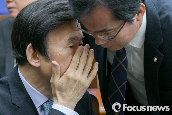 | △ 귀엣말하는 윤병세 |