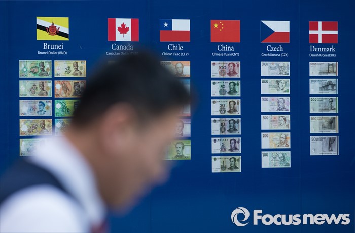 (서울=포커스뉴스) 중국 증시가 또 다시 폭락했다. 위안화가 8일 연속 절하된 7일 오후 서울 중구 KEB하나은행 앞 화폐 벽보 앞을 시민들이 지나가고 있다.