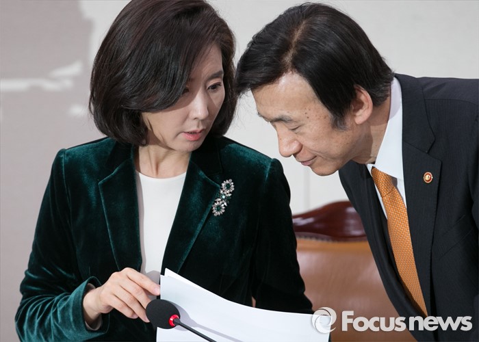 | △ 대화하는 나경원 위원장-윤병세 장관 |