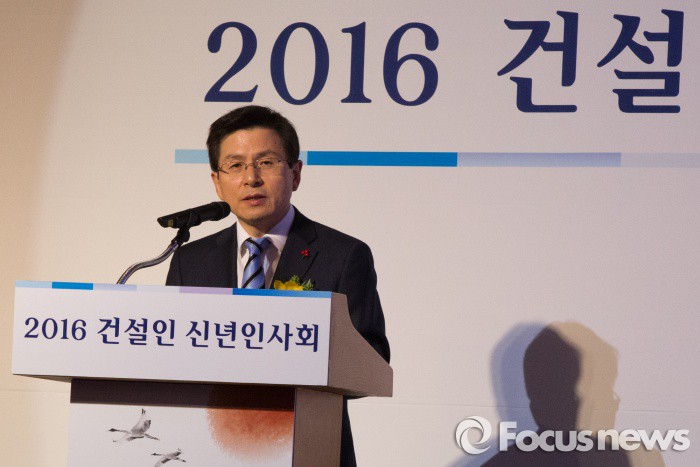(서울=포커스뉴스) 황교안 국무총리가 7일 오후 서울 중구 롯데호텔에서 열린 2016 건설인 신년인사회에 참석해 신년사를 하고 있다.