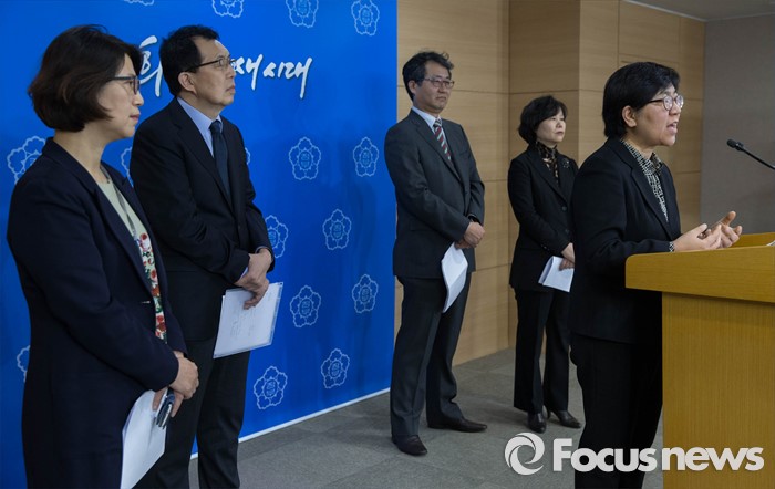 (서울=포커스뉴스) 8일 오전 서울 종로구 정부서울청사에서 정은경(오른쪽 첫번째) 질병관리본부장 직무대리가 메르스(중동호흡기증후군) 바이러스 유전체 변이가 관찰되었다는한언론의 기사와 관련,브리핑을 하고 있다.