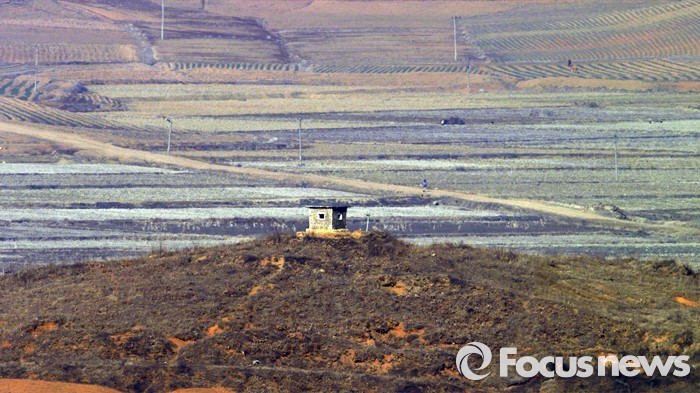 (파주=포커스뉴스) 군 당국의 대북확성기 방송 재개를 앞둔 8일 오전 경기도 파주 오두산 통일전망대에서 바라본 북한 개풍군 마을 인근에 군 초소가 보이고 있다.
