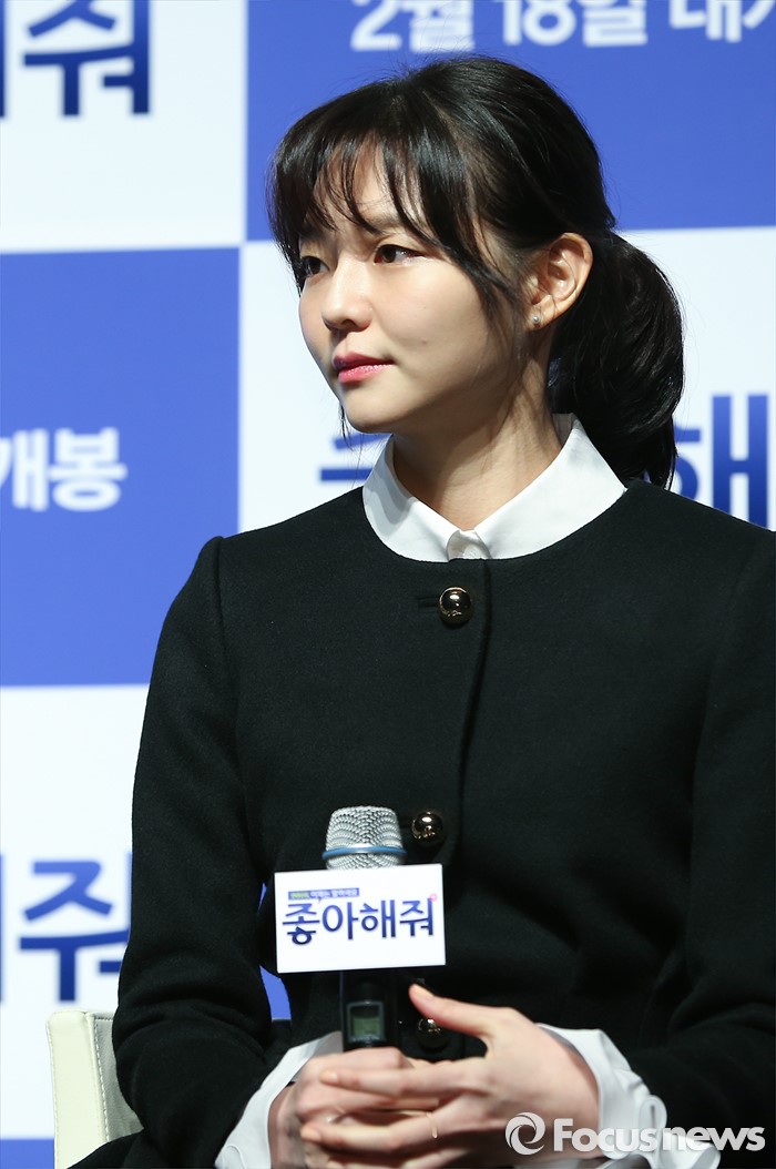 (서울=포커스뉴스) 12일 오전 서울 강남구 압구정 CGV에서 열린 영화 '좋아해줘' 제작보고회에 참석한 배우 이솜이 취재진에게 질문을 받고 있다.