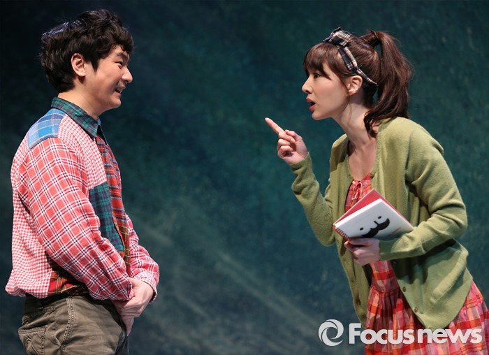 (서울=포커스뉴스) 12일 오후 서울 종로구 상명아트홀에서 열린 연극 'ALMOST MAINE(올모스트 메인)' 프레스콜에 참석한 연극배우 강기둥(왼쪽)과 박민정이 공연을 선보이고 있다.