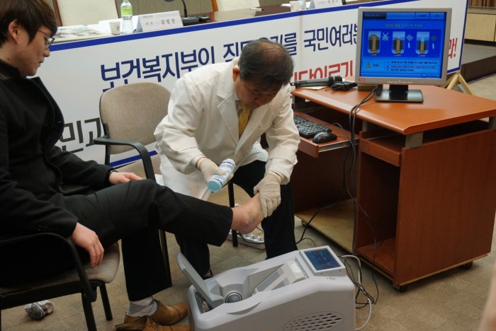 김 회장은 골밀도 측정 후 “방금 보셨듯이 어려운 내용도 없고 누구나 다 할 수 있다”며 “이런 의료기기를 사용하는 것인데도 의료계가 한의사들을 고발하고 있는 실정”이라고 꼬집었다.