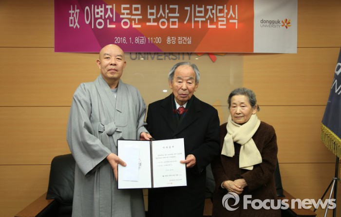 동국대 한태식 총장은 "고인의 목숨과도 같은 귀하디귀한 돈을 기부해 주셔서 진심으로 감사드린다"며 "110주년을 맞은 동국대의 발전과 사회에 기여하는 인재를 육성하는 데 요긴하게 쓰겠다"고 감사의 뜻을 전했다.