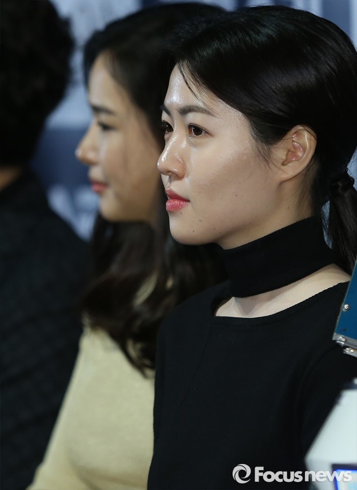(서울=포커스뉴스) 13일 오후 서울 광진구 롯데시네마 건대입구점에서 열린 영화 '로봇, 소리' 언론시사회에 참석한 배우 심은경이 취재진에게 질문을 받고 있다.