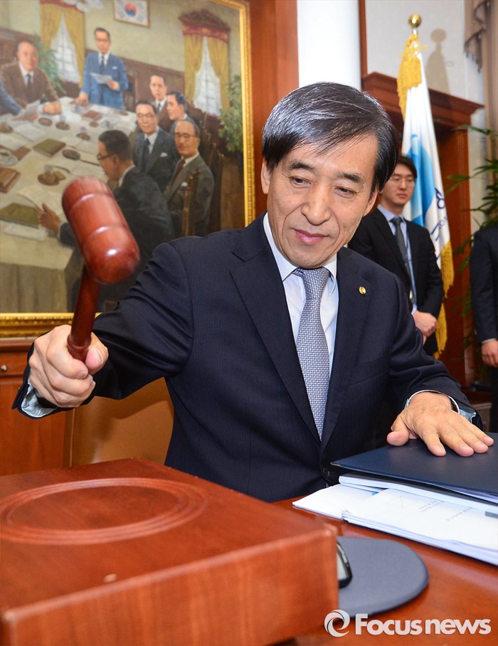 (서울=포커스뉴스) 이주열 한국은행 총재가 14일 서울 중구 한국은행 본관에서 열린 금융통화위원회의에서 의사봉을 두드리고 있다.