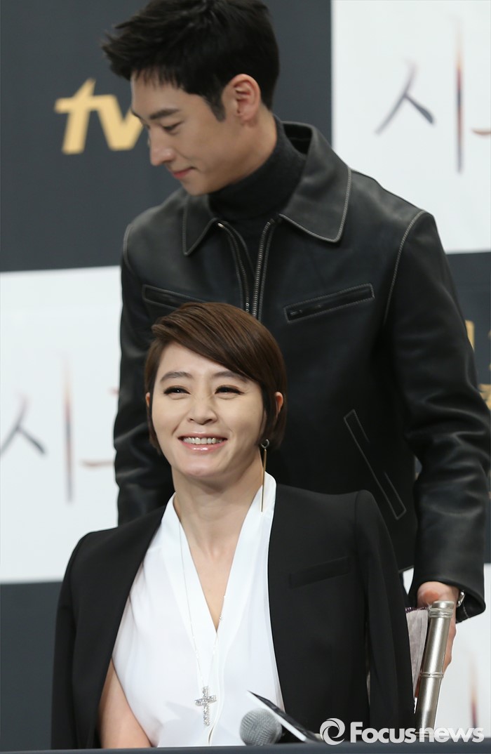 (서울=포커스뉴스) 14일 오후 서울 영등포구 타임스퀘어 아모리스홀에서 열린 tvN 10주년 특별기획 '시그널' 제작발표회에 참석한 배우 이제훈(뒷줄)이 김혜수의 의자를 빼주고 있다.